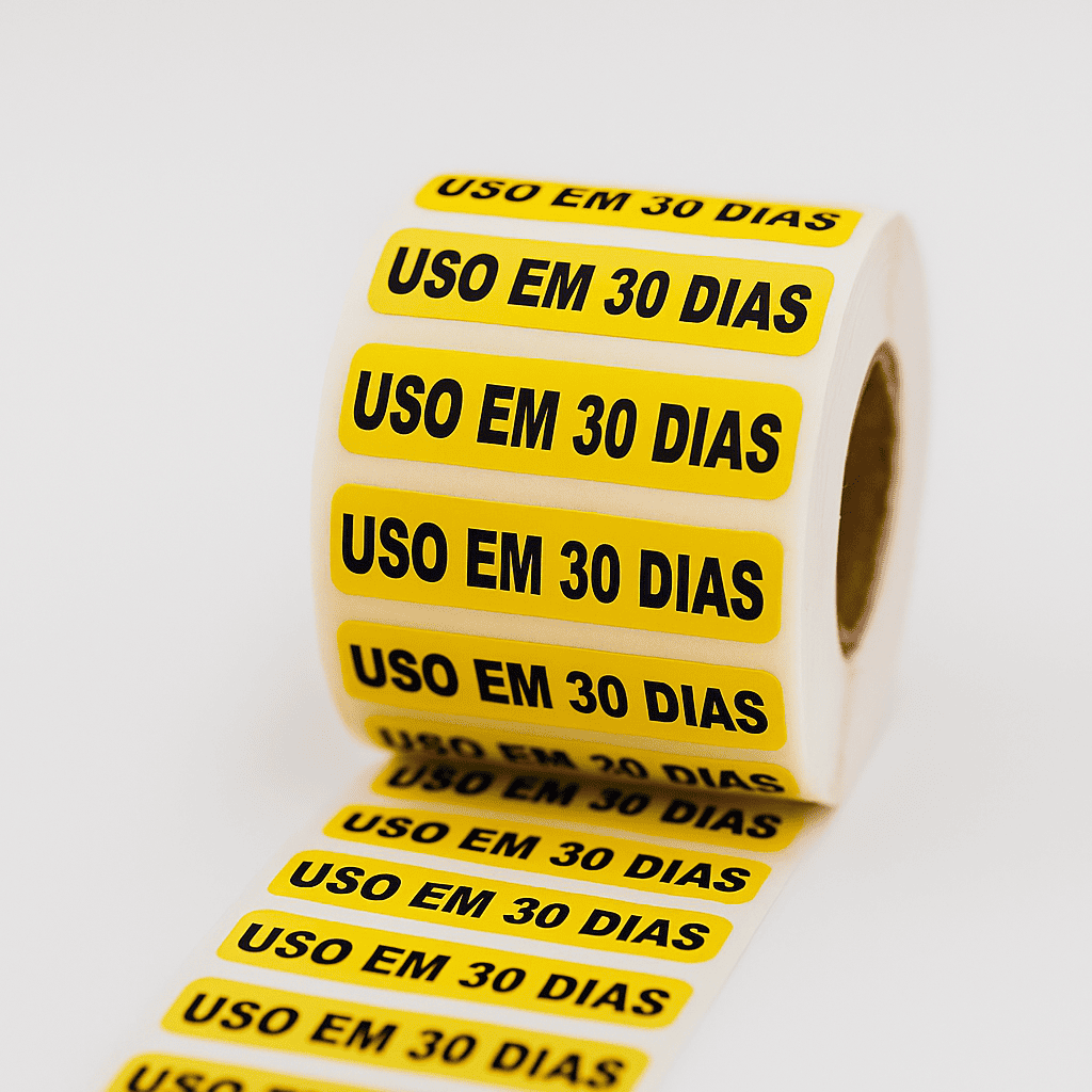 Etiqueta Adesiva “USO EM 30 DIAS” – Couchê 40x10 mm (Rolo com 1000 unidades)